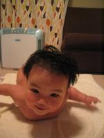 息子はうつ伏せで腹を軸に回転+寝返りで、まだずりばいは出来なくても